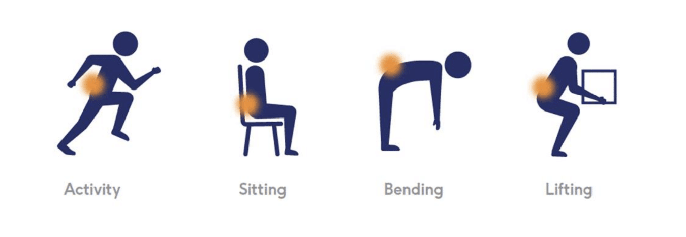 - Pain that worsens with prolonged sitting, standing, or bending forward